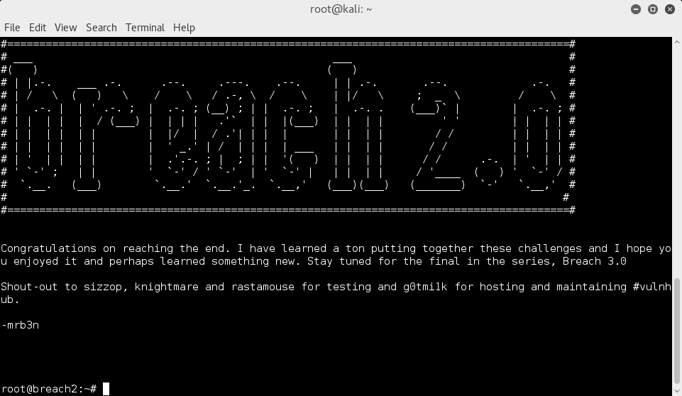 Breach 2 was (at the time of this writing) the latest and greatest machine on Vulnhub in a 3 part series.