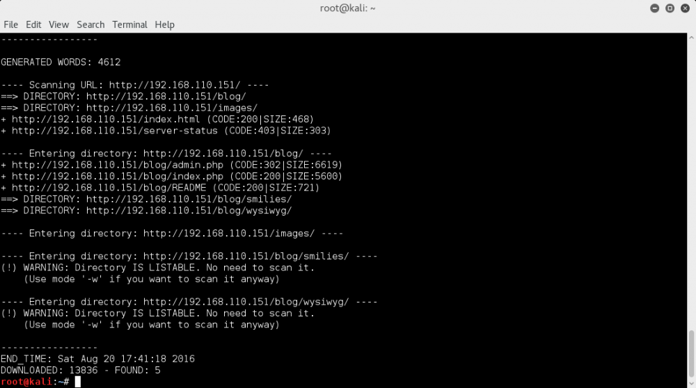 Port 80 is open now with Apache! First thing i did was visit the site and get greeted by a big lovely image of "BEEF - It's What's for Dinner!". Beef, beef xss? Starting to seem more like a client attack as we go on! First things first, lets see what else is in this webserver.