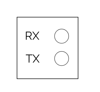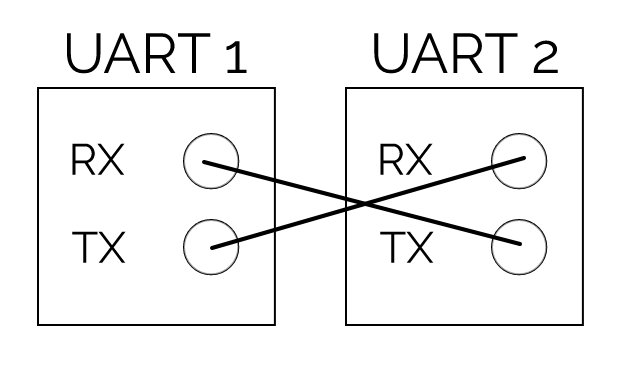 The receiver and transmitter, marked RX and TX respectively, need to connect to a second respective UART device's TX and RX in order to establish communications.