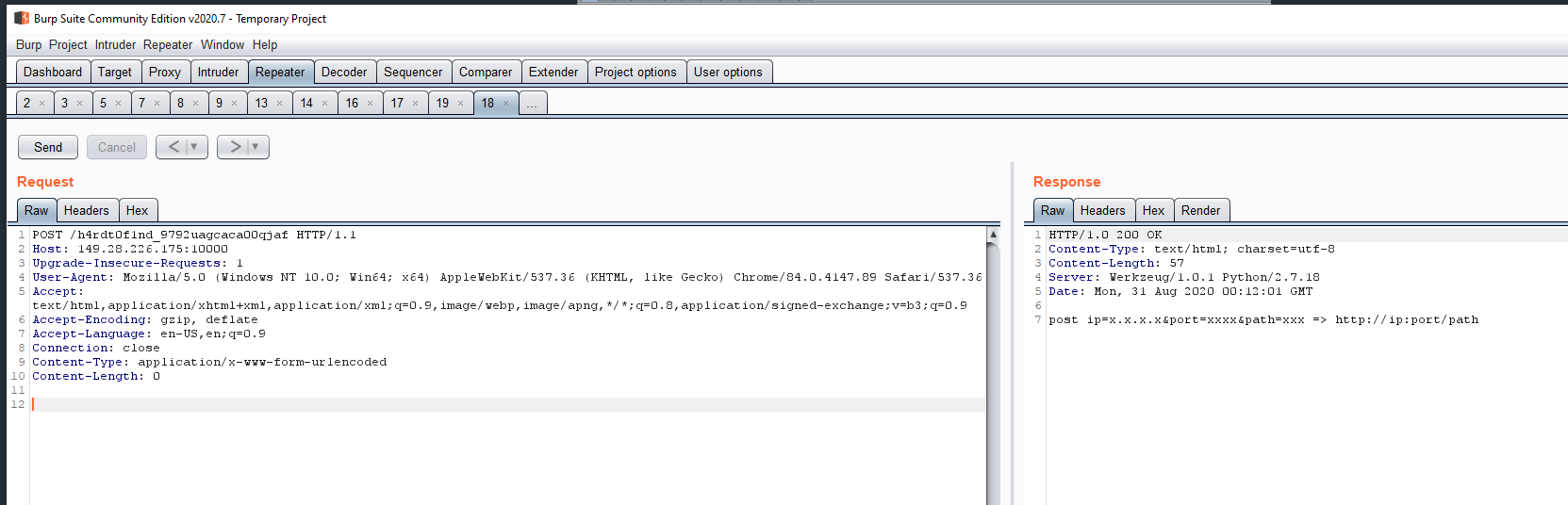 return "post ip=x.x.x.x&port=xxxx&path=xxx => http://ip:port/path"