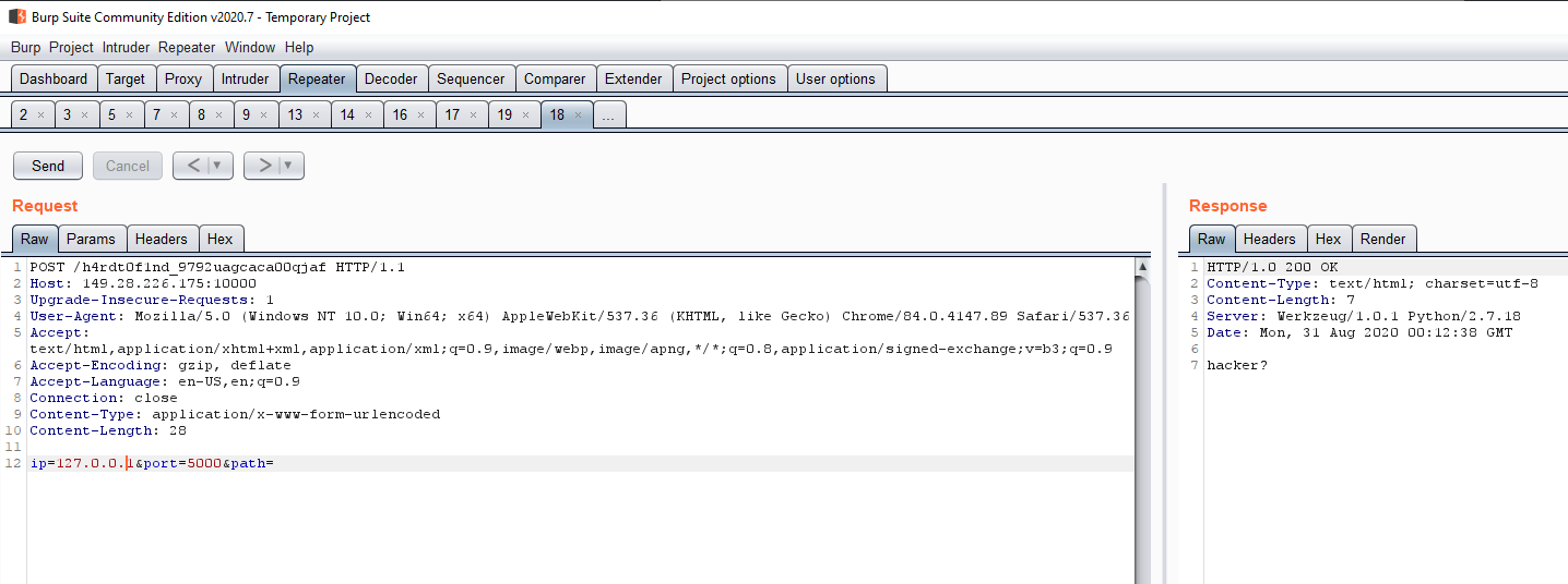 (None, 'ip', 'port', 'path', 'post ip=x.x.x.x&port=xxxx&path=xxx => http://ip:port/path', 4, 'hacker?', 'http://{}:{}/{}', 'timeout', 2, 'requests error')