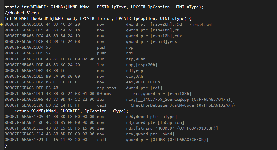 But for the sake of learning, let's go ahead and take a look at how this kind of hooker works so we could re-implement our own if we wanted. At first, I had considered sharing my own implementation but I decided it'd be an exercise best left to the reader (especially as other implementations for study already exist). Instead, we will debug my implementation to better understand how this patching mechanism works.