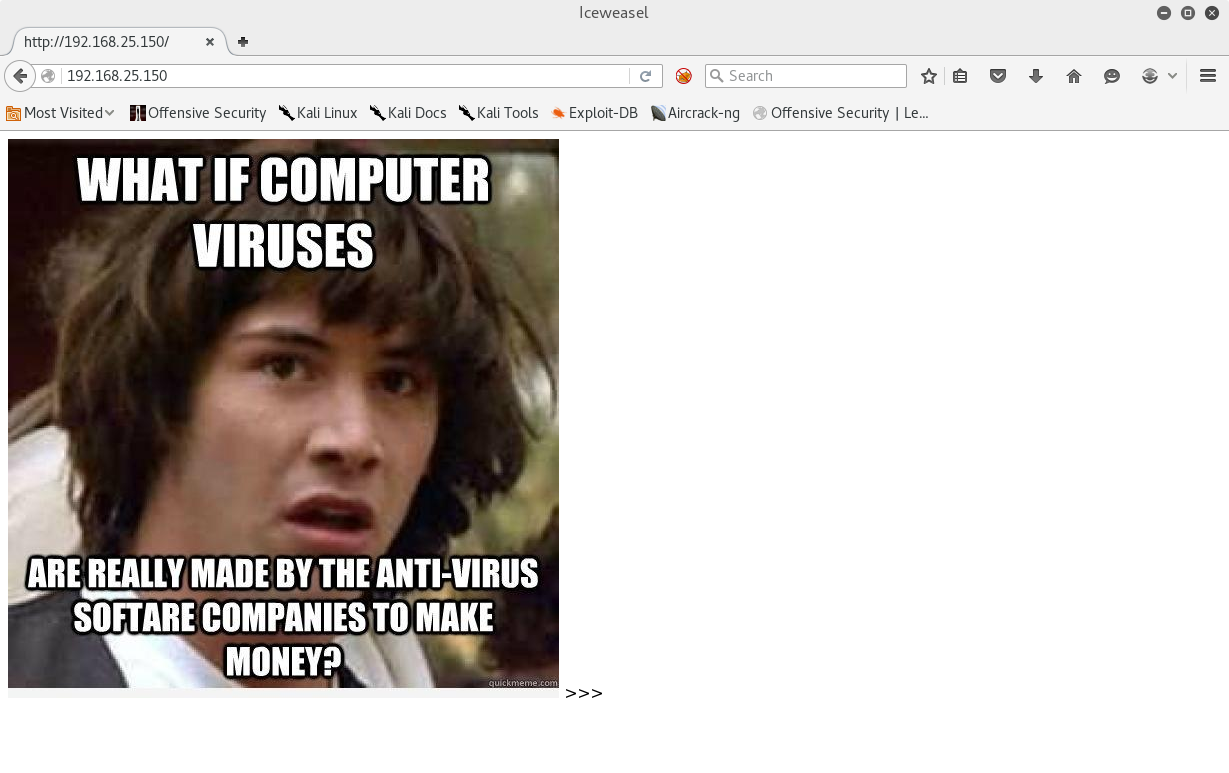 I decided to start by poking port 80 first. Visiting the webpage we get presented with an image of Keanu Reeves! Next I decided to run a Dirb and see what else was in there. Lo and behold a "test" directory!